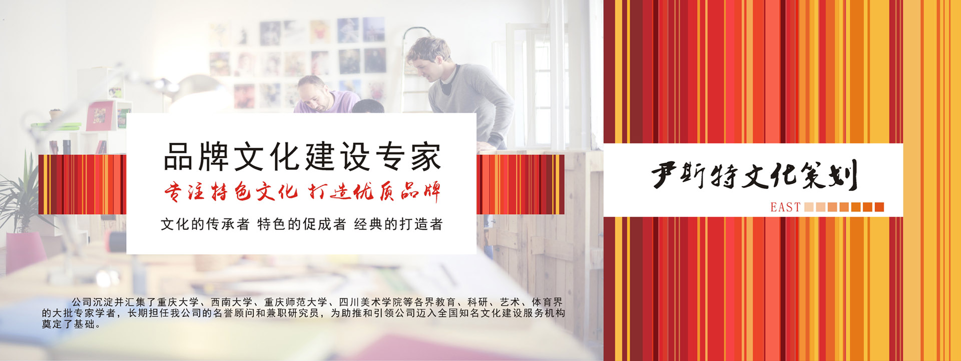 重慶尹斯特文化傳播有限公司是一家在重慶地區、西部地區主要從事校園文化、企業文化、機關文化、醫院文化、旅游文化、園林景觀咨詢策劃,特色企業打造的綜合性企業文化建設務機構。